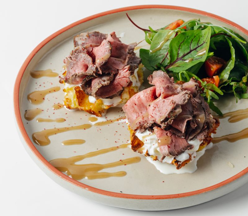 Драники-вафли с ростбифом