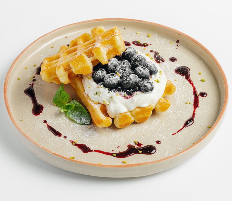 Бельгийские вафли с черничным соусом